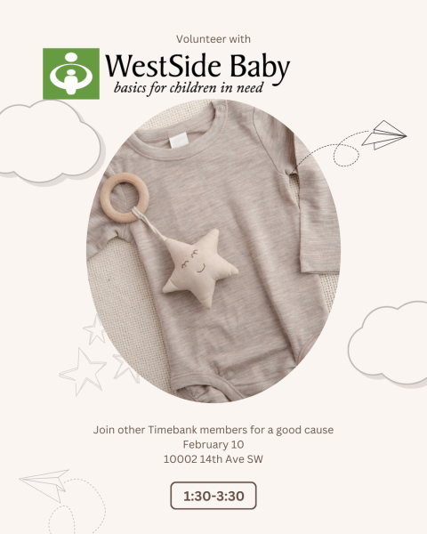 Visit with other Timebankers and help sort and pack clothes, diapers, and toys for babies and children in need.